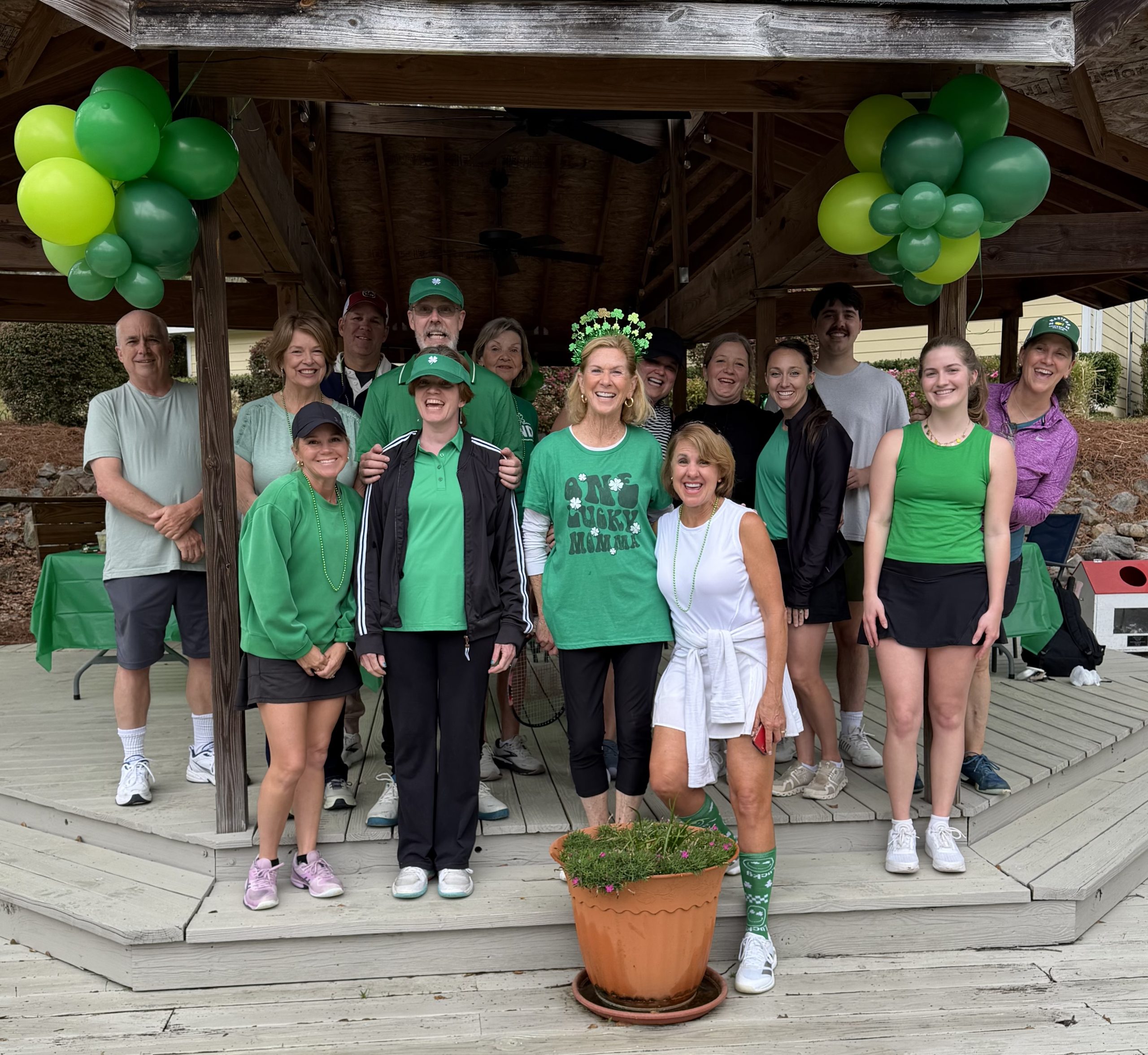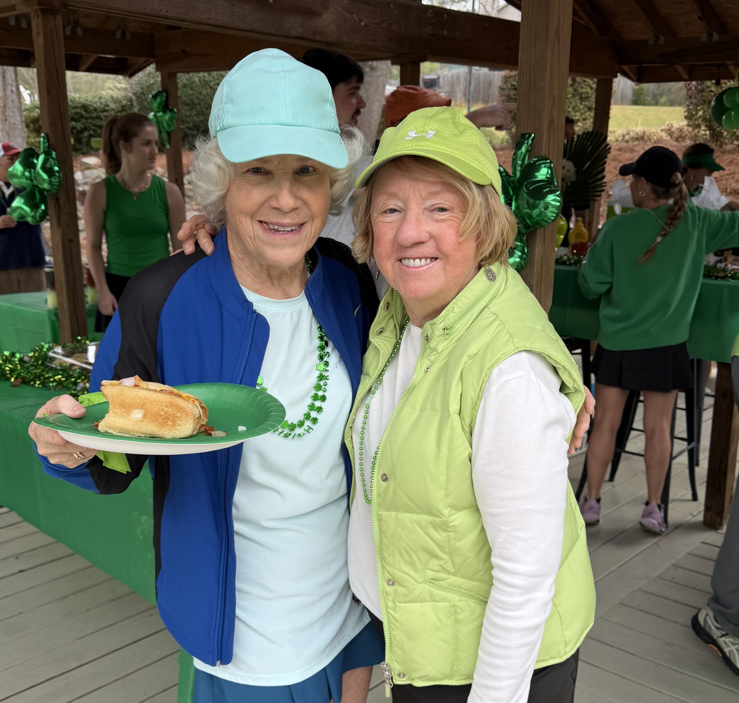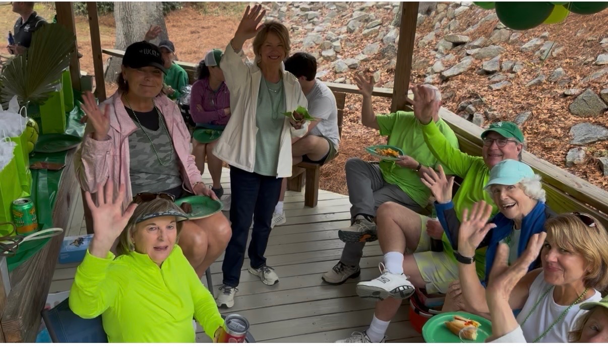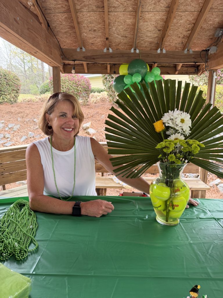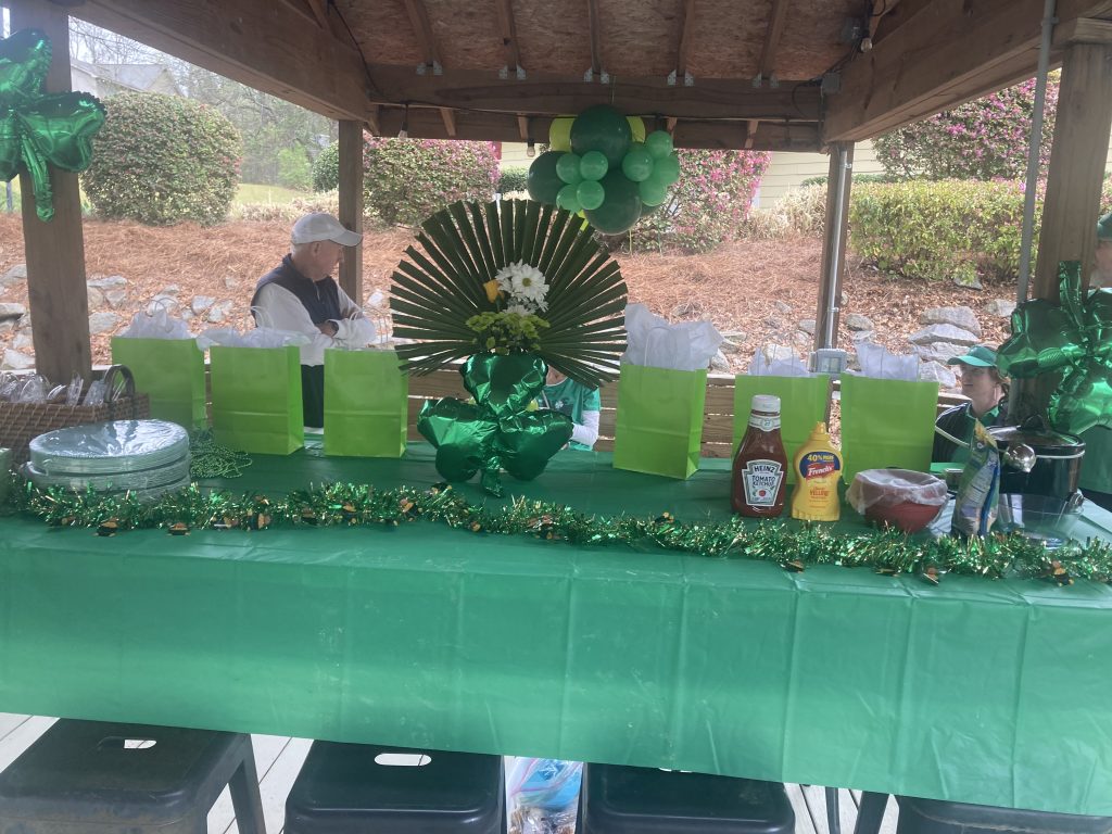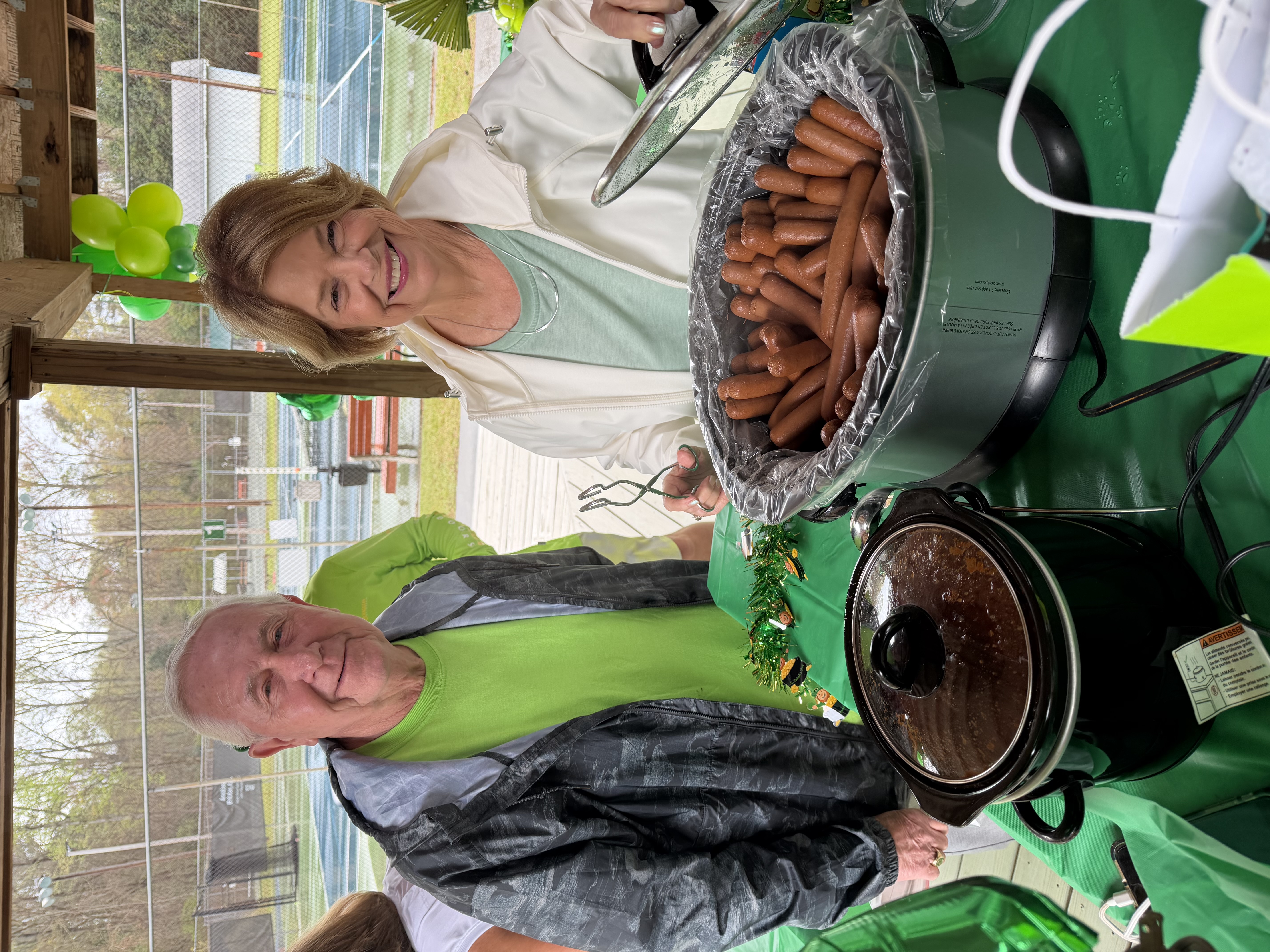 Over 30 members gathered for a mixed doubles event on a rainy Sunday to celebrate friendships, enjoy an Irish hotdog feast and donate canned food to “Sharing God’s Love” in Irmo.