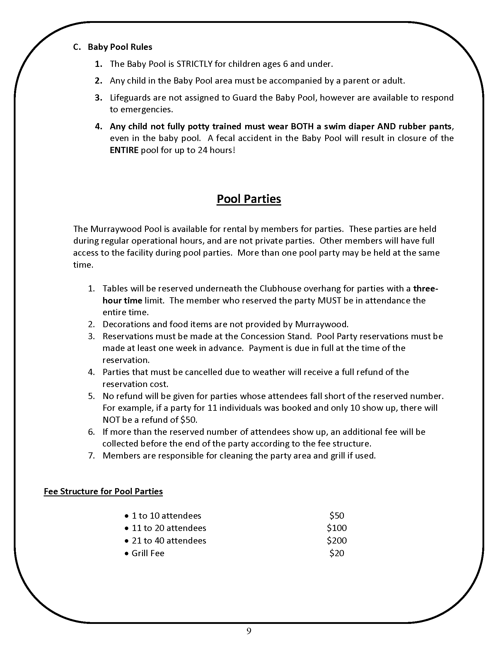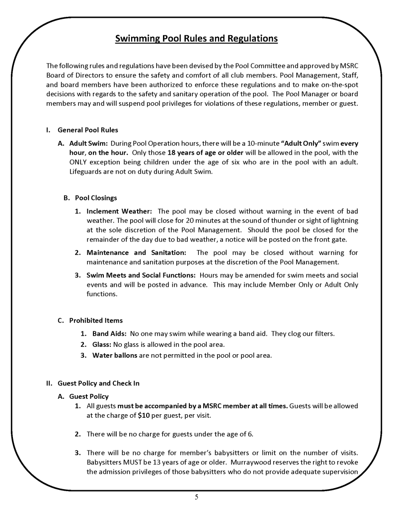 Pool Rules The Pool Rules have been revised and updated for more concise content for Summer 2025. Pool Rules (print version)
